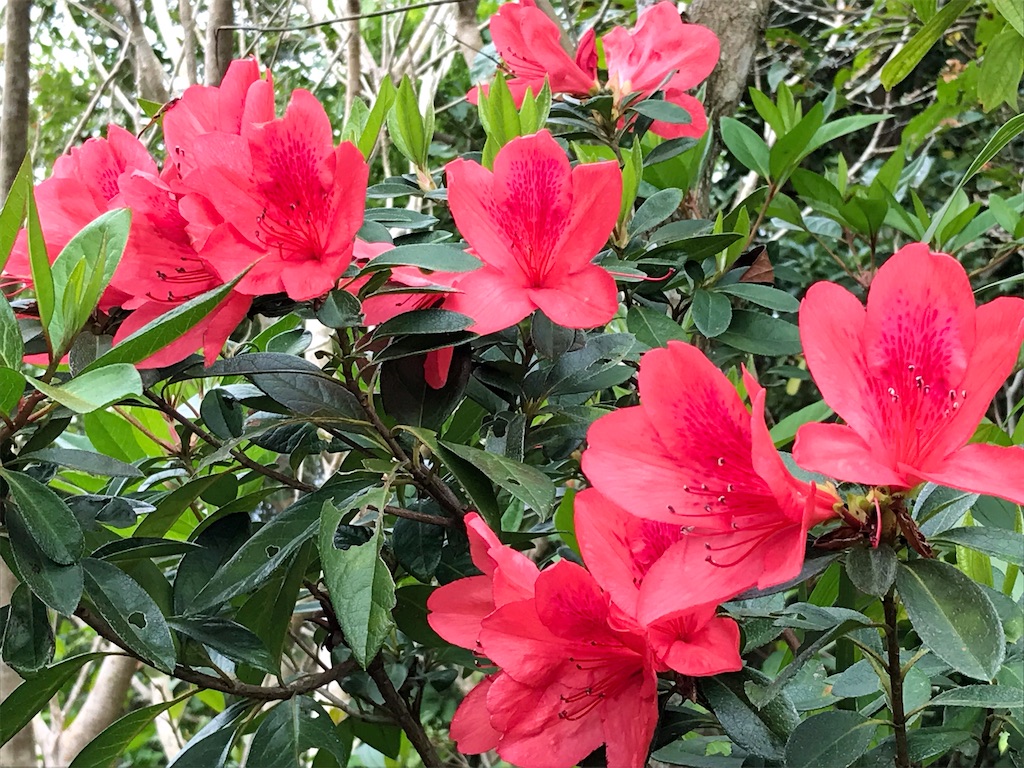 2022-02-07 【お山】ツツジが咲きました こんにちは。坂田麻季江です。 お山はツツジが満開です。 東村では、2022年3月1日〜3月21日に つつじ祭りが開催される予定です。 お山は一足先に咲きました。 きれいです。 ↓こちらはカナメモチ系の木でしょうか、 赤くて可愛い、木の新芽も発見。 新芽が赤い花みたい。 お山は春です。